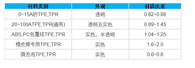 玩具,折疊臉盆,密封條,汽車方向盤套,耳機線,防滑衣架,工具手柄包膠等等材料都是采用TPR材料來生產(chǎn)。TPE、TPR材料用途如此的廣泛,那TPE多少錢一公斤呢?其實影響TPE價格的因素很多,比如硬度,回彈,比重,耐老化,耐磨,伸長率等等,今天我們講一下其中一個因素——比重。
